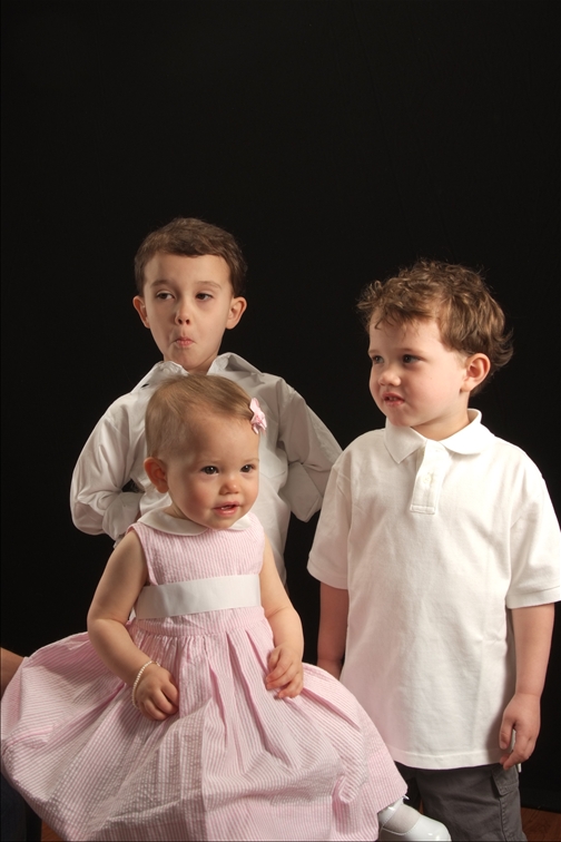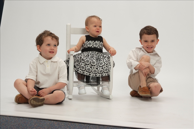 I tried bribing the boys with ice cream afterwards if they did a good job. Well, the promise of ice cream was long forgotten when they had the immediate gratification of repeatedly spinning the stool they were supposed to be sitting on. Oh, it was really fun to run around also. And just forget following simple directions like, “sit down next to your sister”, or “smile”. The photographer might as well have been speaking a foreign language.